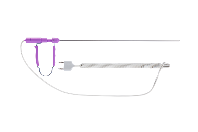凱卓科技的高頻內(nèi)窺鏡手術(shù)電極可360°旋轉(zhuǎn)操作,前端工作部分角度≤45°。搭配RFS-4000KD設(shè)備輸出頻率1.71MHz使用,時(shí)間更短,消融效果更好。